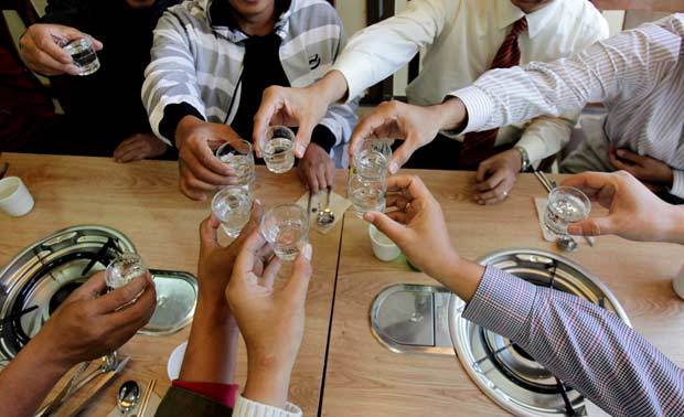 Tips Fotografi Bersulang dengan gelas sloki penuh Soju, minuman beralkohol khas Korea. (Ari Saputra) Jakarta - Jauh sebelum demam se...